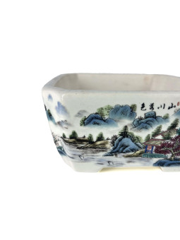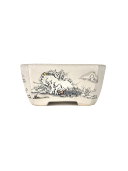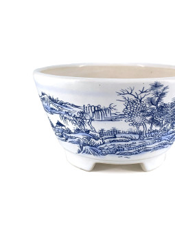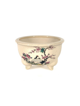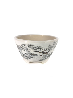 Tiesto redondo 12 cm Yixing blanco con dibujo...