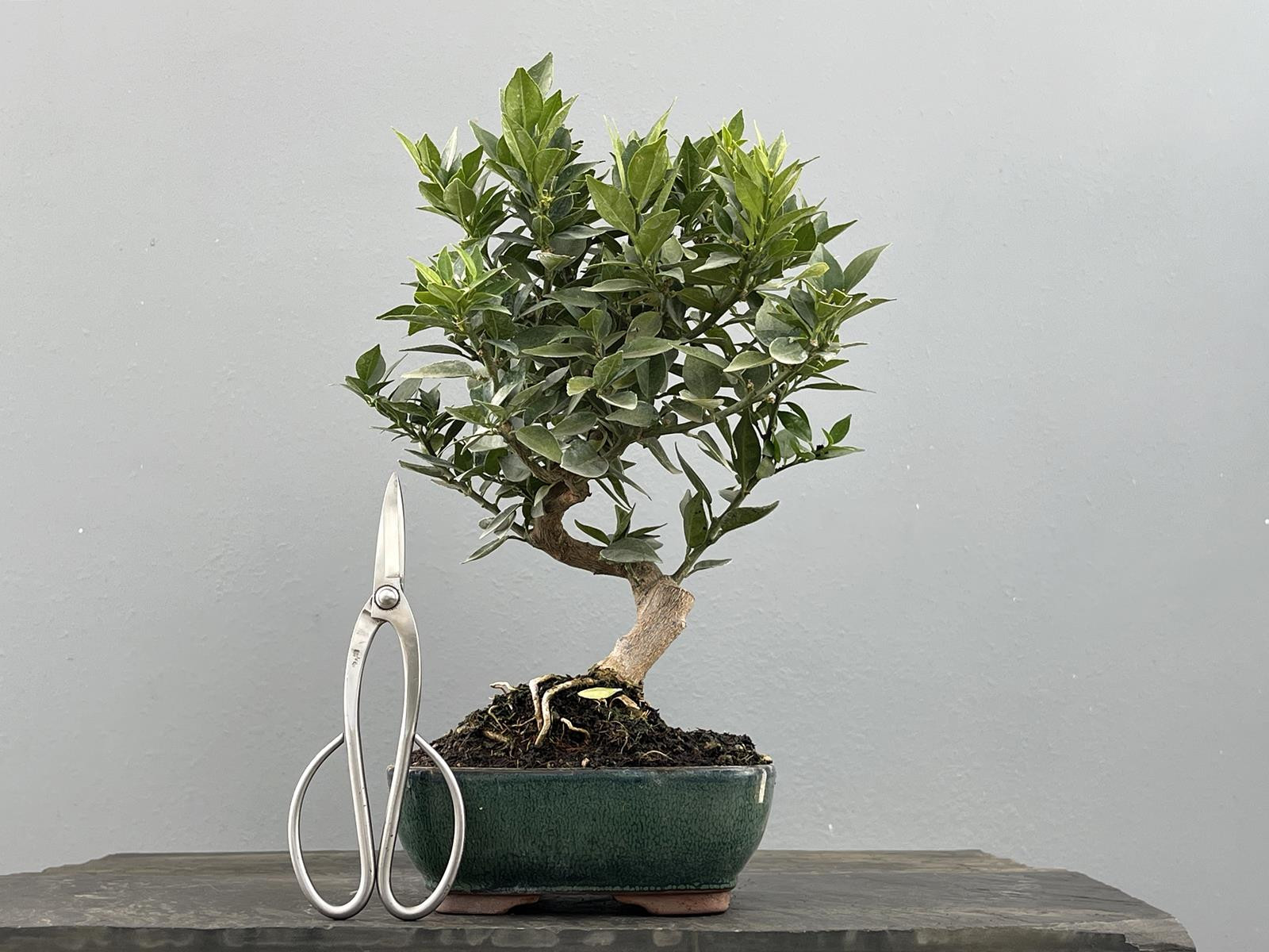 Sustrato turba, nebari entre 2 y 2,5 cm, altura sin tiesto entre 31 y 35 cm. Si necesitas más fotos o información de este producto contacta con nosotros en el 671933599. ¡No dejamos nada al azar! Recibirás el mismo árbol que ves en la foto (las tijeras sirven únicamente como referencia, no están incluidas).
