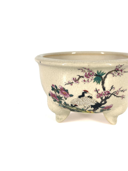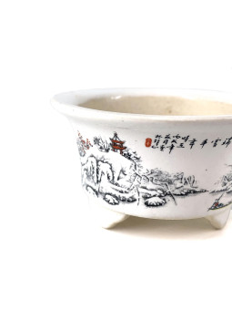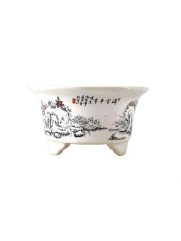 Tiesto redondo 11.5 cm Yixing blanco con dibujo CPA28