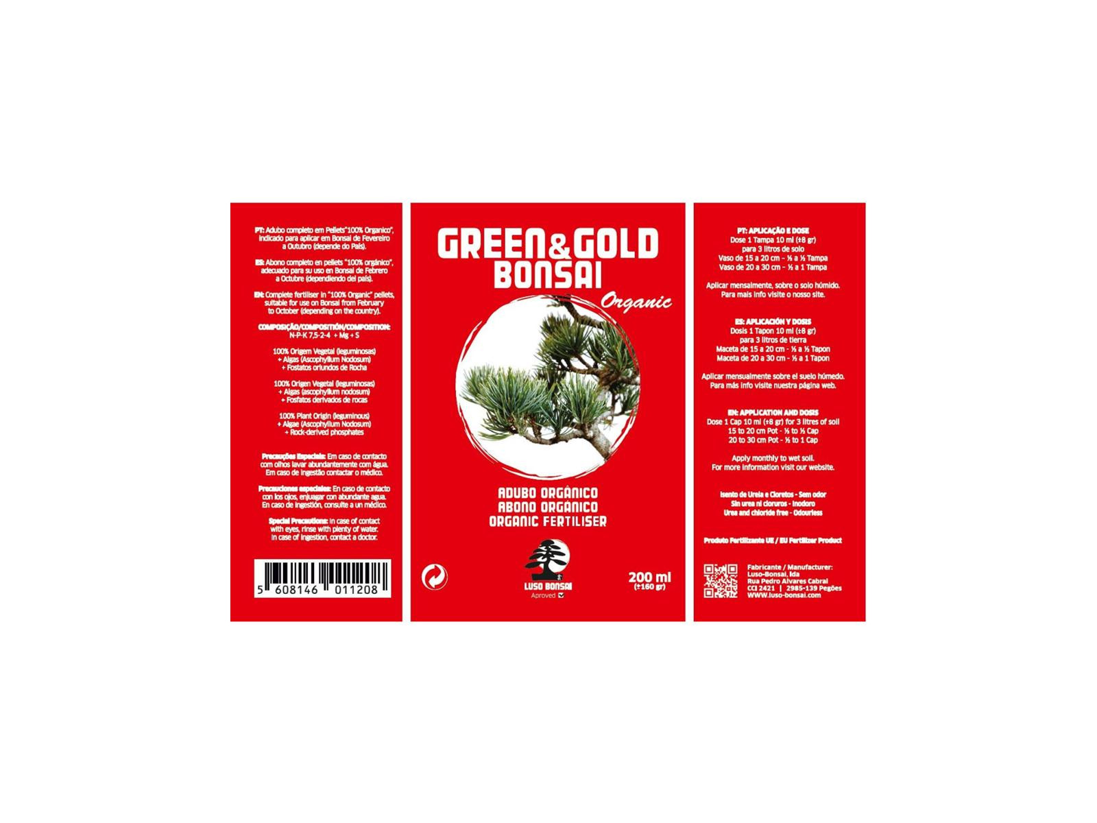 Indicado para todo tipo de Bonsái, esIdeal para abonados de primavera y otoñales,o todo -> o todo (Portuguese) translates to "todo" in Spanish.El año en Pinheiros y Bonsái maduros -> duros, donde se pretende que el crecimiento sea lentoy hoja de tamaño reducido.